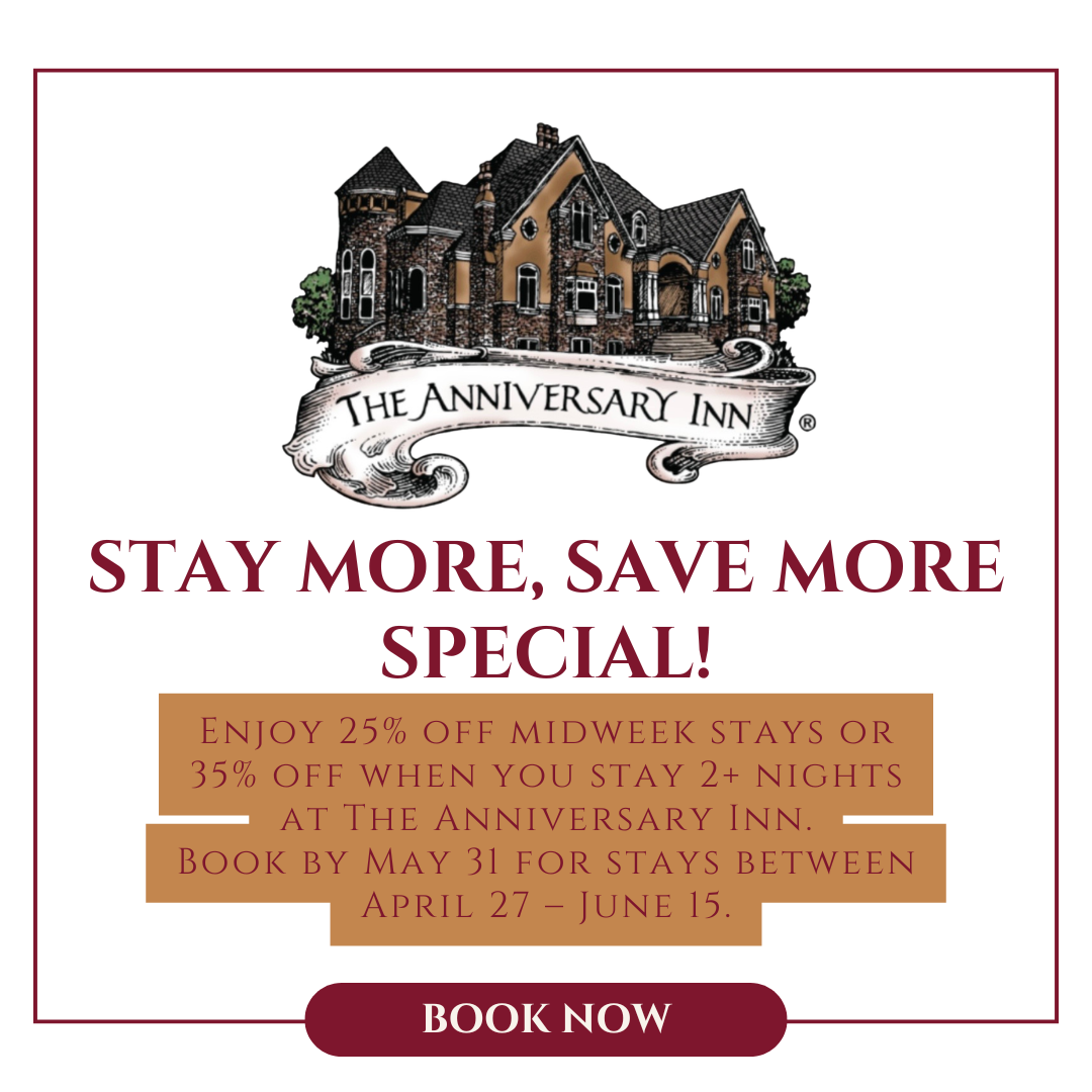 The Anniversary Inn offers the ideal romantic getaway. It’s a perfect way to plan a special escape without the hassle or large expenses of traveling far. With over 100 uniquely themed rooms, there is a suite for every couple! Whether you seek pampering in our two-story Romeo and Juliet suites, a touch of magic in our Mysteries of Egypt or Arabian Nights suites, or a more modern setting like New York, New York or Zen Garden, you’re sure to discover your ideal lover’s retreat among our room options. Start your journey to the perfect romantic escape today!