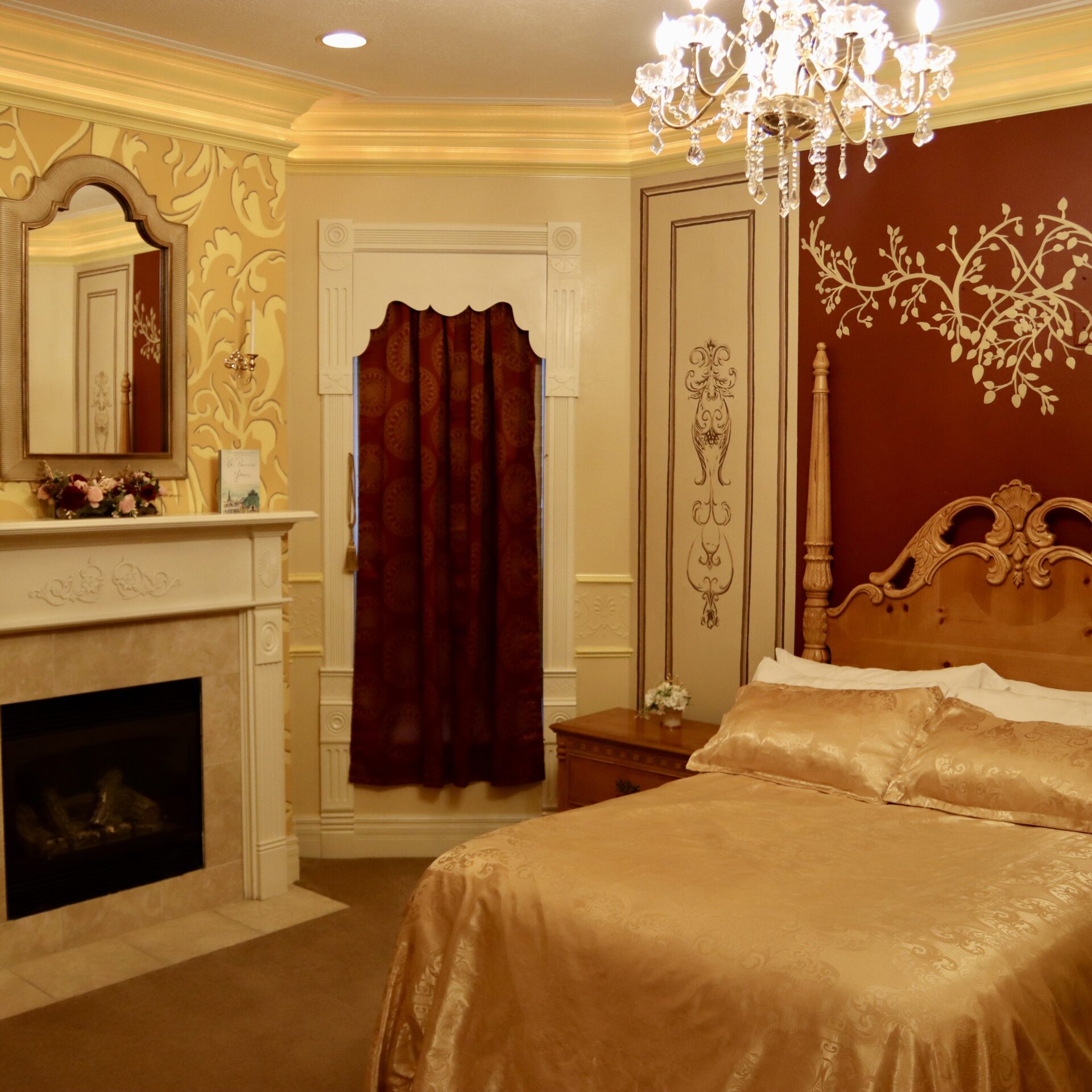Find true bliss and enjoy the romance-filled air that only a European Honeymoon can bring. Airy, European windows give this room a light, romantic feel for a special night with your sweetheart. Unwind in the opulent bedroom and find warmth next to your own, private fireplace. The ultimate sense of leisure is within your grasp as you soak in the bubbler tub while sipping on the complimentary, chilled cider.