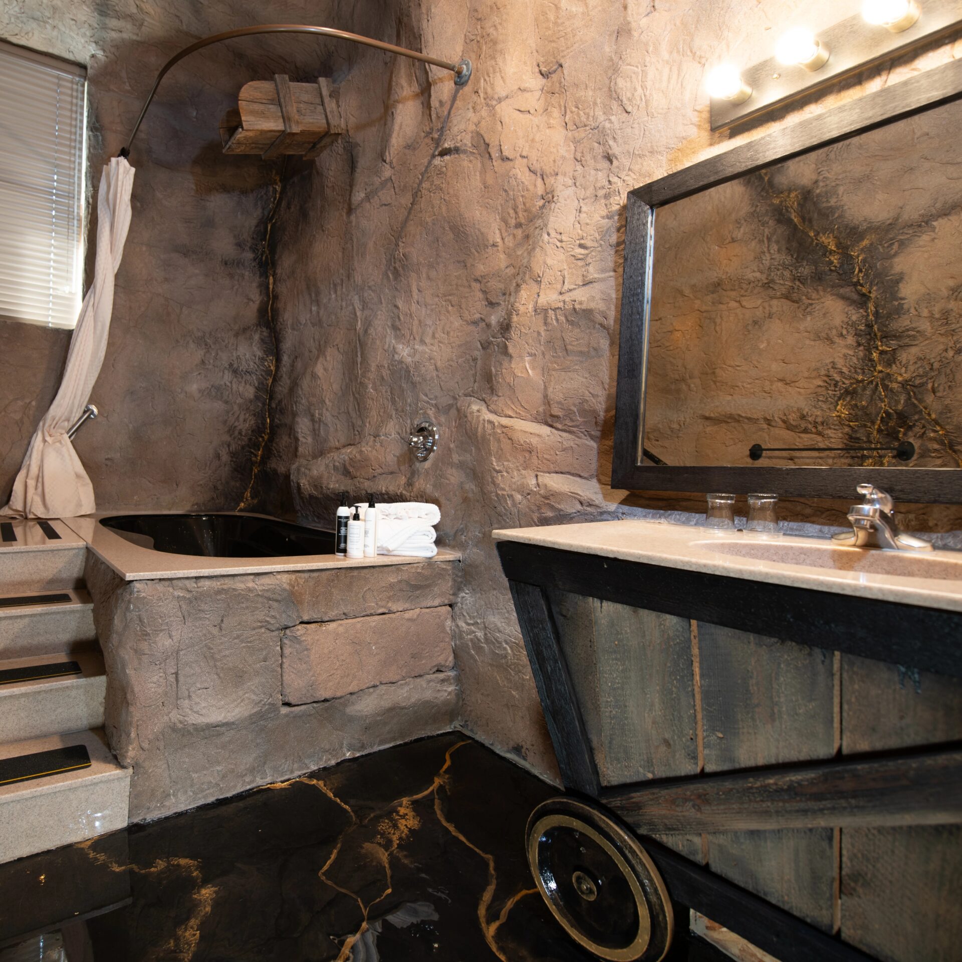 Stairs to enter tub.